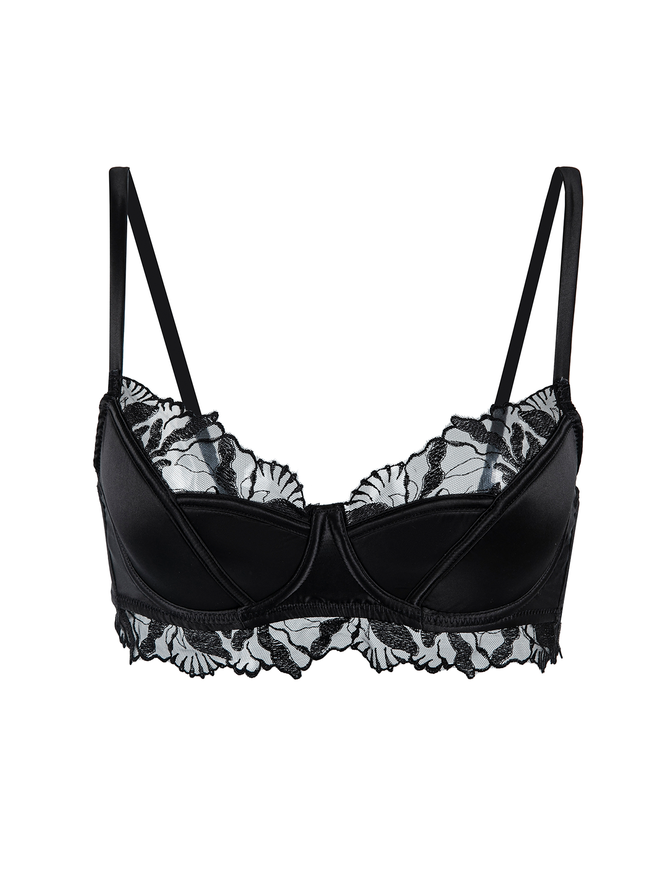 Bralette in Raso e Pizzo Floreale Nero
