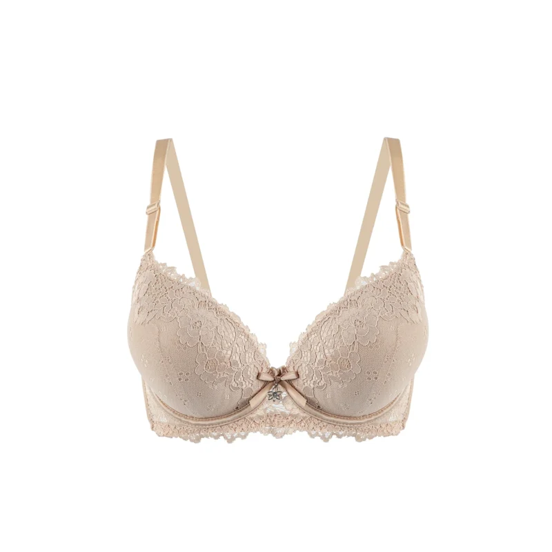 Romantic Floral Lace Push-Up Bra - Midnight Black