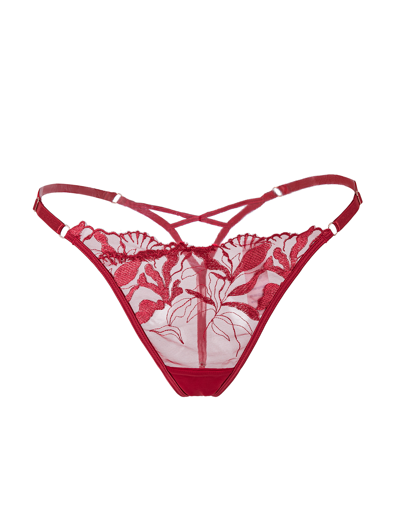 Perizoma con Ricami Floreali in Pizzo Rosso