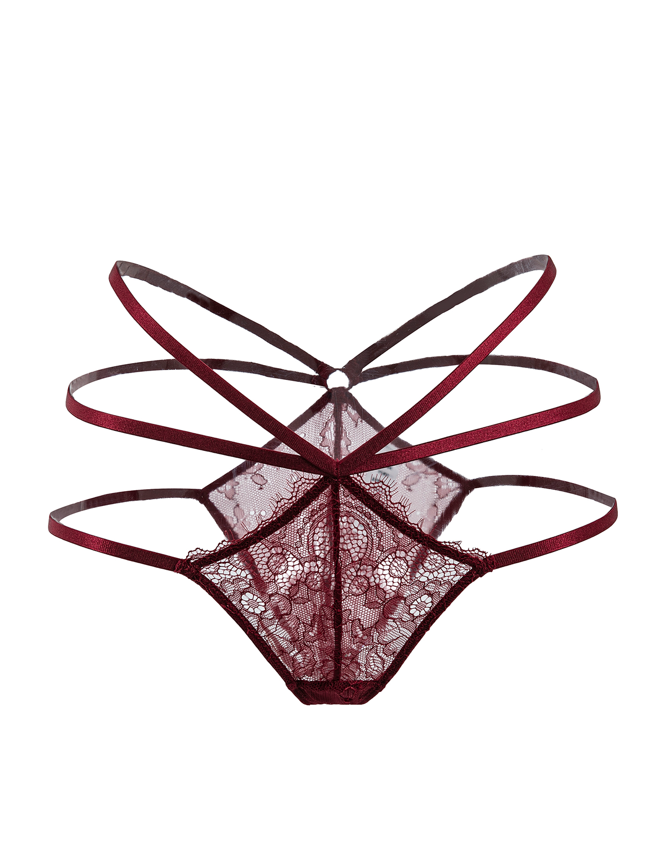 Questo perizoma unisce la sensualità del pizzo floreale trasparente al design audace delle spalline multiple. Caratterizzato da una silhouette “cage-style” (a gabbia), presenta cinghie elastiche che si incrociano elegantemente sulla parte anteriore e sui fianchi, convergendo in un piccolo anello decorativo. Il tessuto leggero e la vestibilità a V garantiscono una linea seducente e un comfort discreto, ideale per occasioni speciali o per aggiungere un tocco di mistero al tuo cassetto della biancheria intima.