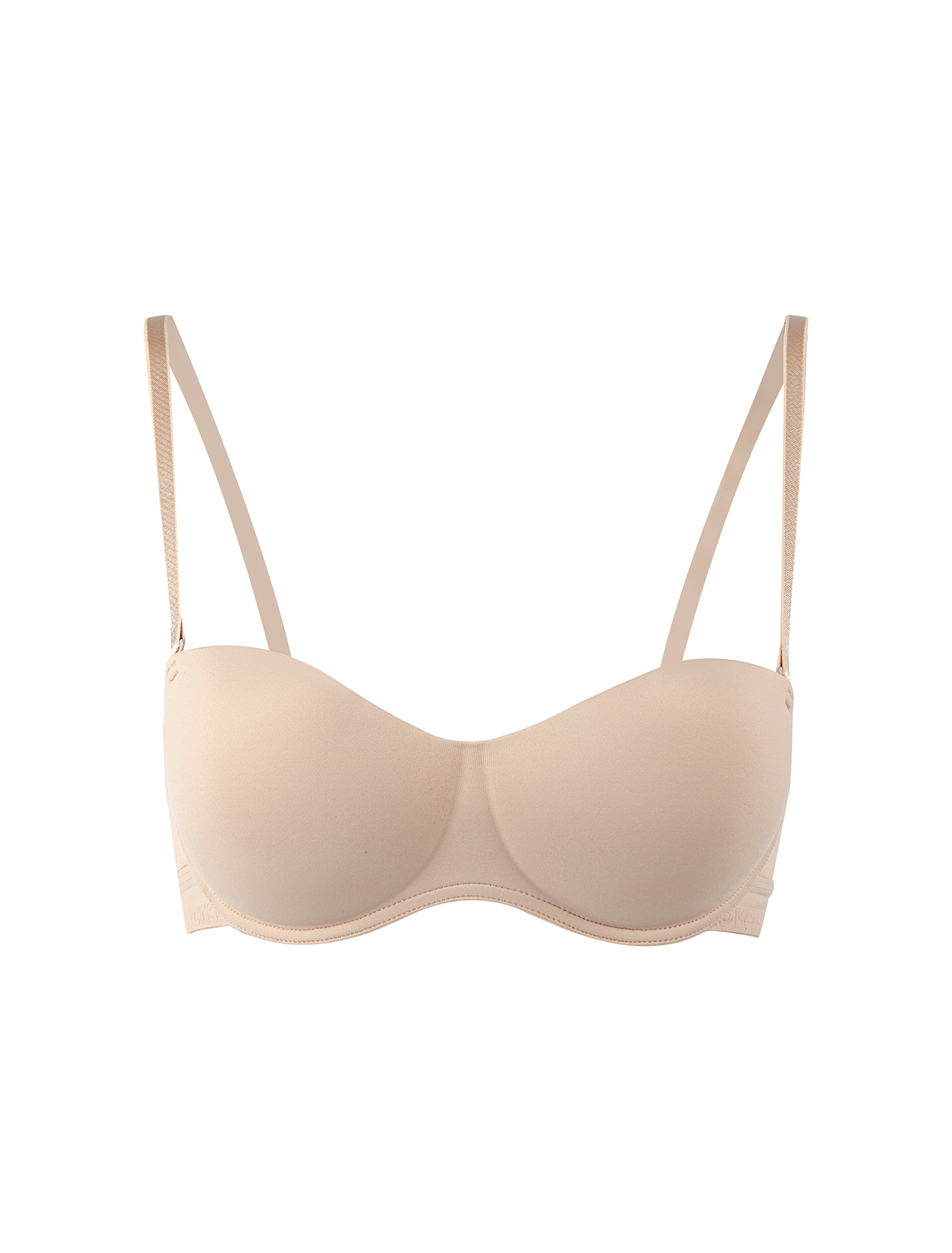 Reggiseno a fascia in microfibra invisibile color carne, con ferretto e coppe preformate. Spalline multiway staccabili incluse.