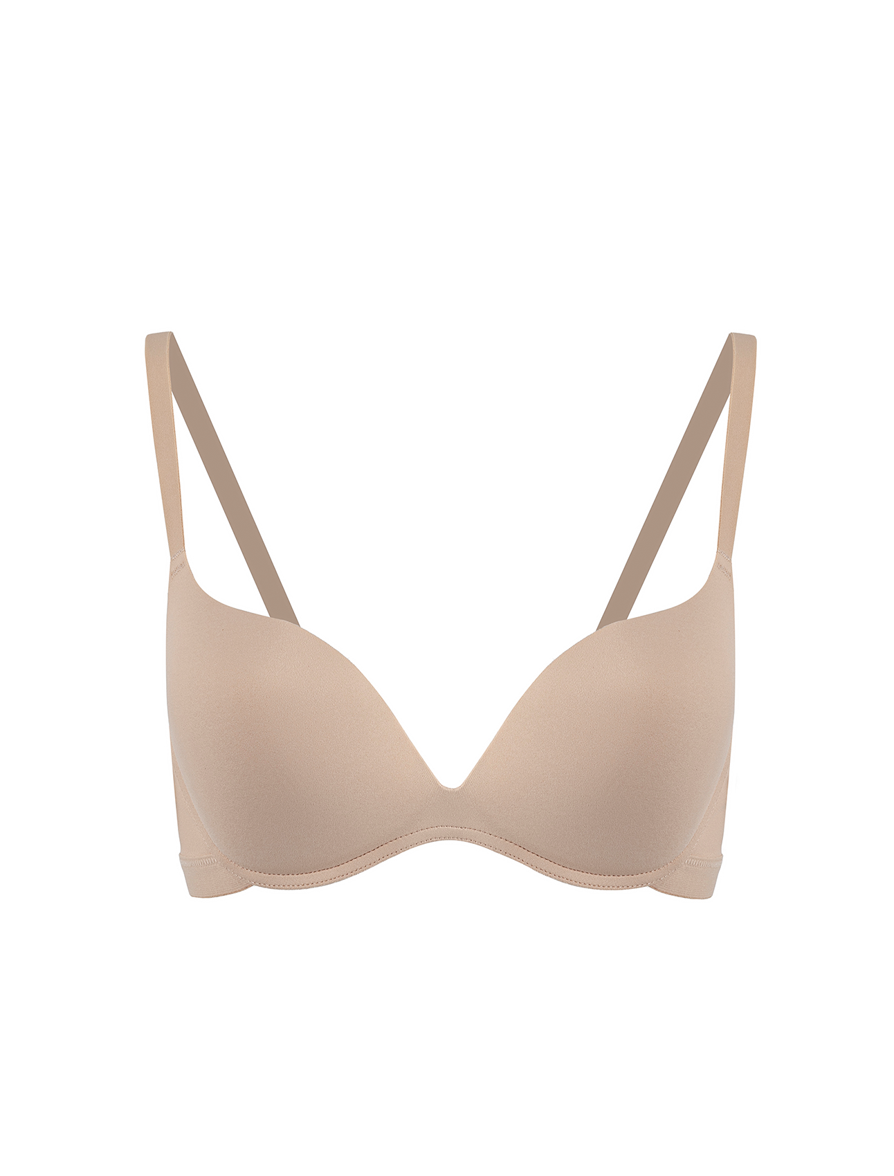 Reggiseno push-up in microfibra liscio e senza cuciture, color “nudo”. Offre un sollevamento naturale e discrezione totale sotto i vestiti più attillati. Massima comodità e vestibilità effetto “seconda pelle”.