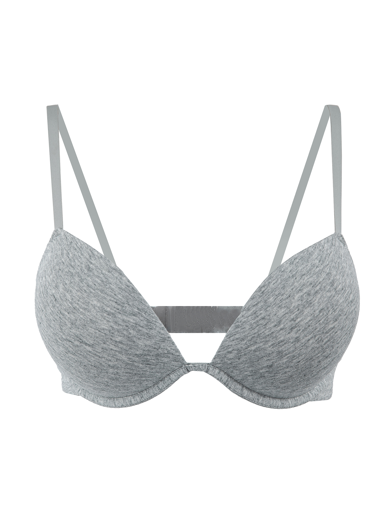 Valorizza il tuo décolleté con il nostro reggiseno push-up in morbido cotone grigio melange. Confortevole e traspirante, è dotato di coppe con ferretto e imbottitura per un sostegno ottimale e una vestibilità perfetta sotto ogni outfit.