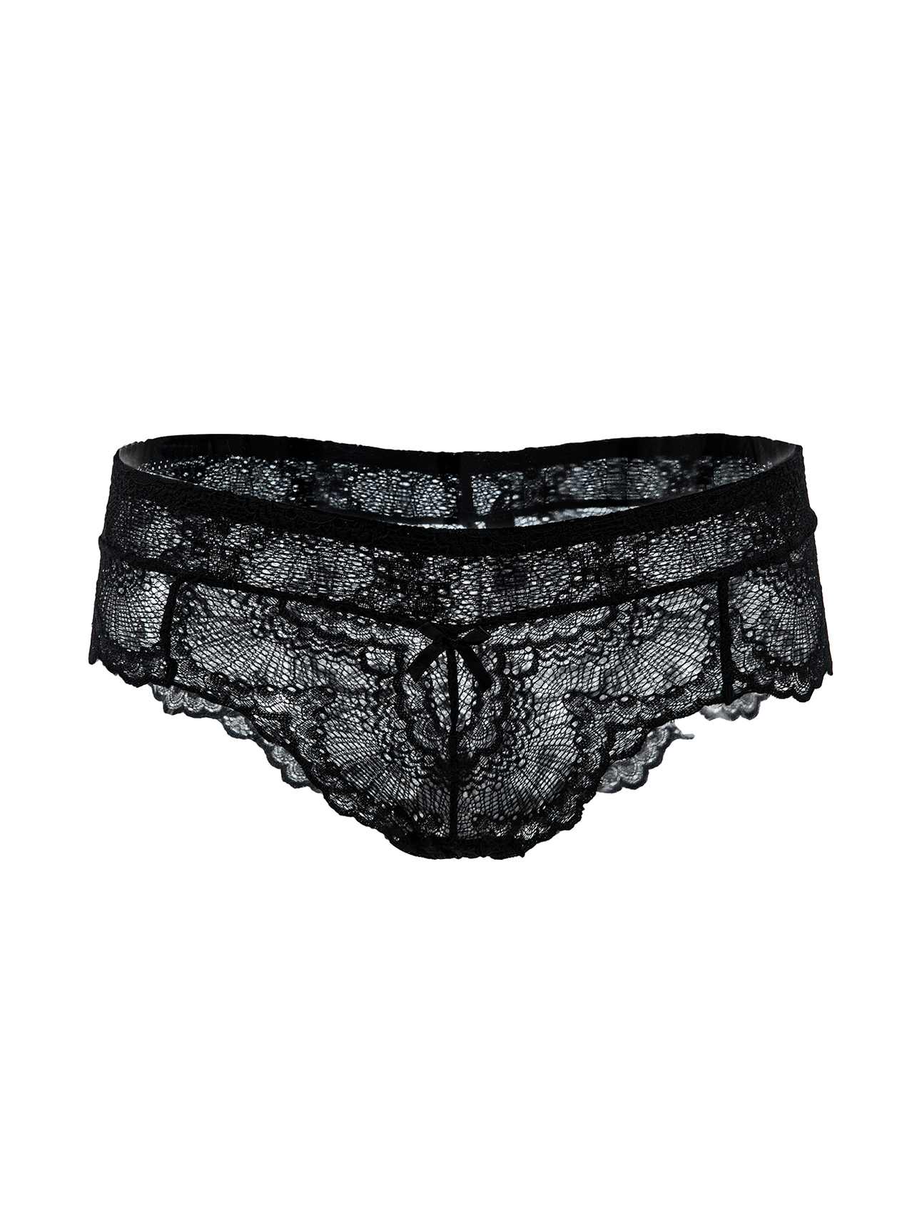 Queste eleganti slip in pizzo nero combinano un design sensuale con un comfort ottimale. Caratterizzate da una silhouette a vita bassa e un delicato tessuto in pizzo floreale trasparente, offrono una vestibilità lusinghiera che abbraccia delicatamente le curve. I bordi smerlati in pizzo aggiungono un tocco di raffinatezza, mentre il piccolo fiocco decorativo al centro del davanti completa il look.