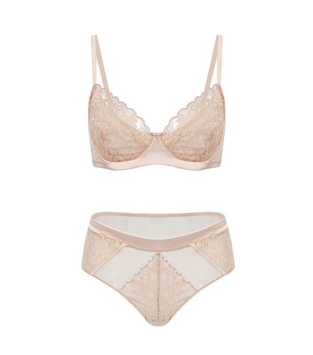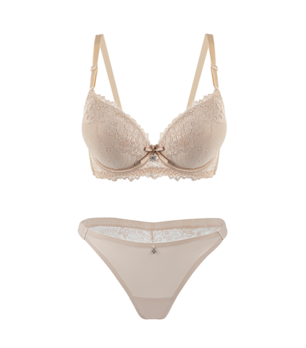 Floral Lace & Mesh Underwired Lingerie Set – Nude Champagne