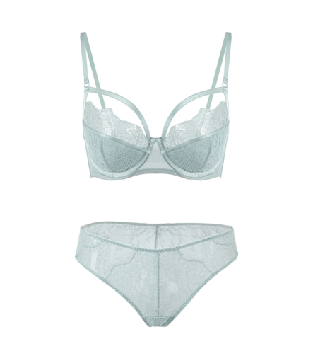 Strappy Floral Lace & Mesh Lingerie Set – Powder Blue