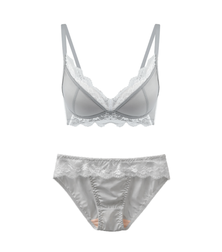 Elegant Lace-Trimmed Wireless Lingerie Set – Silver Grey