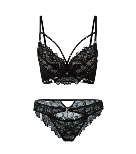 Midnight Garden Strappy Lace Bra & Matching Brief Set – Onyx Black