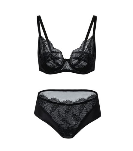 Noir Filigree Embroidered Lingerie Set