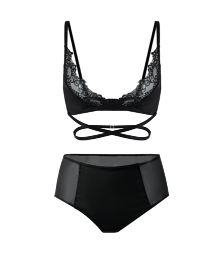 Full-Lace Wireless Bralette & Bikini Set – Midnight Onyx