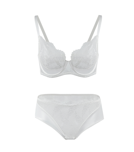 Sheer Floral Lace & Mesh Lingerie Set – Ivory Cream