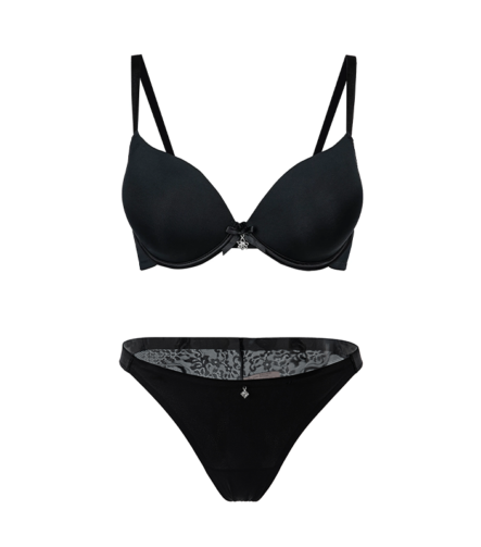 Seamless Microfiber & Leopard Lace Lingerie Set – Onyx Black