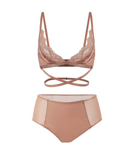 Silk & Sheer Mesh High-Waist Briefs – Mocha